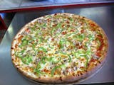 Pepperoni, hamburger, sausage, peppers, onions & mushrooms.