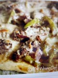 Taco seasoning hamburger, banana peppers, mozzarella & cheddar. Sour cream or salsa.